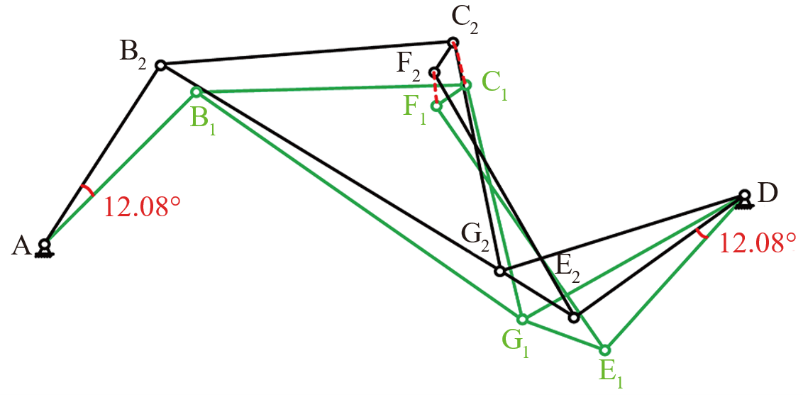 | 样机试验值 Prototype test values | 第1组Group 1 | 59.8° | 94.6° | −38.9° | −128.8° |